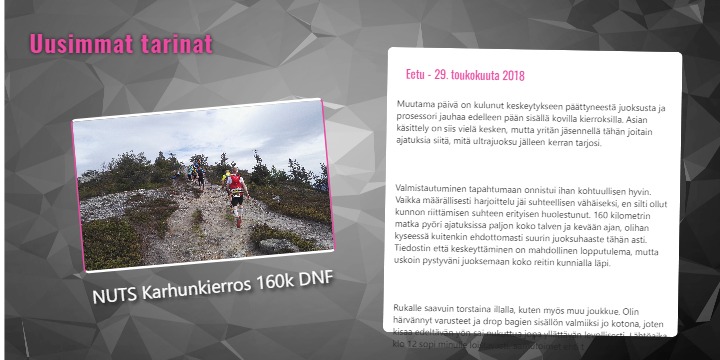 Kilpakumppanien uudet blogikirjoitukset ja kuulumiset päivittyvät automaagisesti blogiseurantasivulle. Seurannassa on eri lajien urheilijoita ja joukkueita maailman huipulta harrastajatasolle saakka. Seurantaan