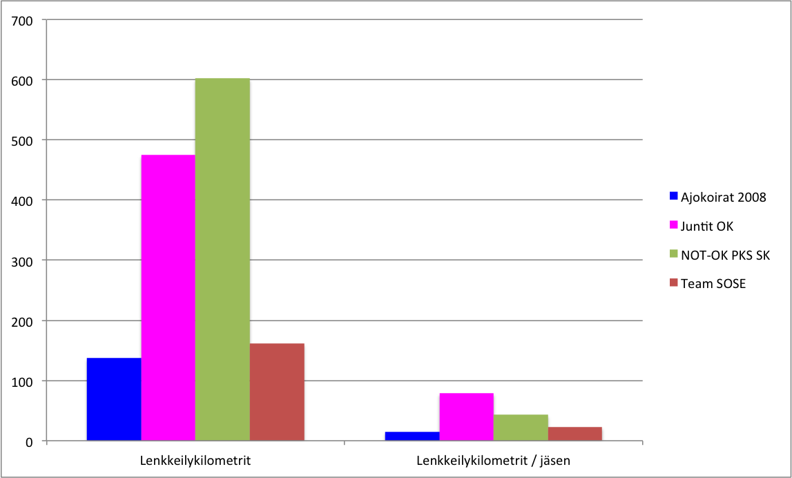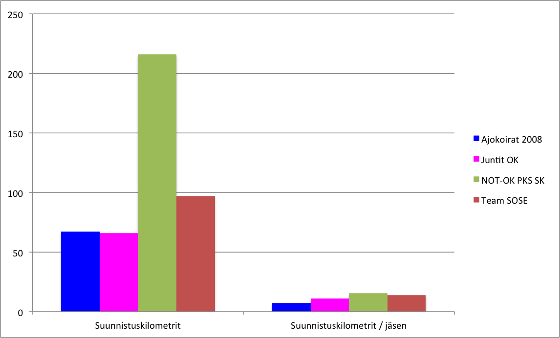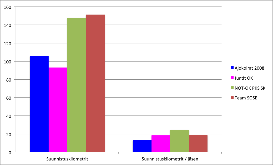 | NOT-OK PKS SK | 6 | 117 tuntia | 19,50 tuntia | 274 km | 45,67 km | 148 km | 24,67 km |